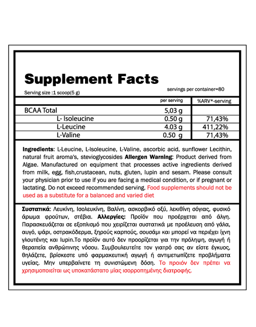 Τα BCAA (αμινοξέα διακλαδισμένης αλυσίδας) είναι απαραίτητα θρεπτικά συστατικά για το σώμα και σύμφωνα με έρευνες η πρόσληψη BCAA μπορεί να προάγει ένα αναβολικό ορμονικό προφίλ (προκαλώντας την αποκατάσταση των μυών μετά την προπόνηση) και μειώνοντας την πιθανότητα της μυϊκής βλάβης κατά τη διάρκεια της άσκησης.