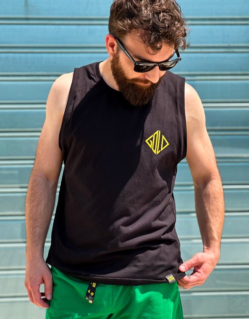 Μαύρο Αθλητικό Αμάνικο με κίτρινη στάμπα Gold