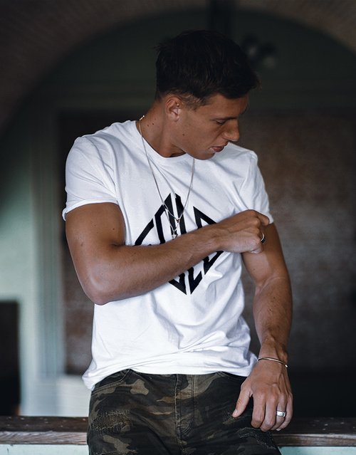 βαμβακερό T-shirt με στάμπα, GOLD. Πολύ καλή εφαρμογή. Λεπτό και δροσερό ύφασμα. Long-fit, στενό ρεγκλαν μανίκι
