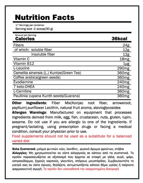 Τέλος, περιέχει βιταμίνη Β12 και διάφορες πηγές καφεΐνης που καταπολεμούν την κούραση και βοηθούν στην αύξηση της αντοχής, πετυχαίνοντας με αυτόν τον τρόπο περισσότερη ενέργεια για το σώμα. Έτσι εξασφαλίζει περισσότερη ενέργεια και αντοχή, ώστε να αυξήσετε την ένταση των προπονήσεων σας και κατ'επέκταση θα δείτε άμεσα τα αποτελέσματα στο σώμα σας.