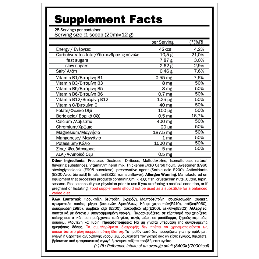 Για άτομο μέχρι 80 κιλά, η προτεινόμενη δοσολογία είναι ένα scoop σε ένα μεγάλο ποτηρί νερό ή χυμό. Μπορείτε να αυξήσετε την δοσολογία έαν έχετε έντονη αθλητική δραστηριότητα. Μπορείς να τους πάρεις πριν, κατά τη διάρκεια αλλά και μετά τη προπόνηση.