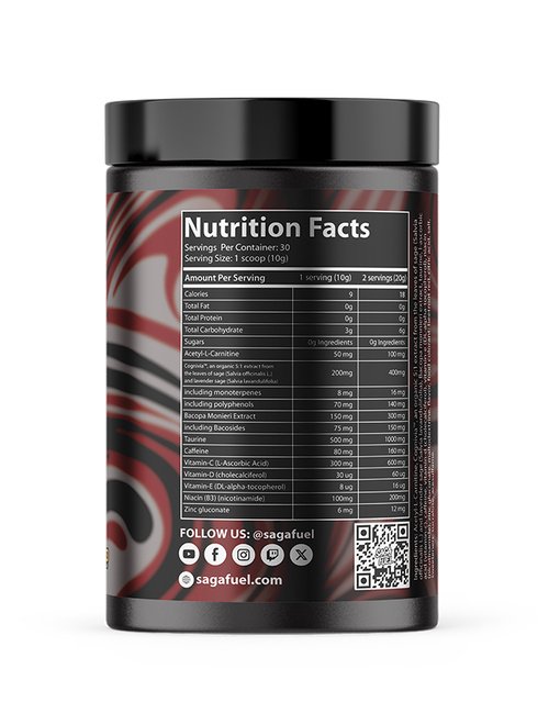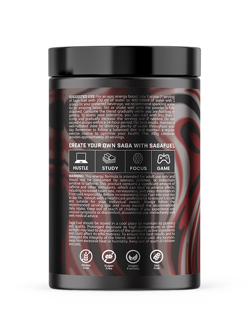Αντικατέστεισε τα ενεργειακά ποτά μια και καλή, χρησιμοποιώντας το sagafuel το οποίο περιεχει 10 φορές πιο δυνατά συστατικά, νοοτροπικές ουσίες η οποίες θα αυξήσουν την εγκεφαλική και γνωστική σου λειτουργια. Πέρα απ'την πληθώρα πλεονεκτημάτων του, το sagafuel περιέχει φυσική καφεΐνη η οποία δεν θα σου προκαλέσει κρασάρισμα μετά την κατανάλωση του, σε σύγκριση με τα ενεργειακά ποτά τα οποία έχουν συνθετική καφεΐνη.