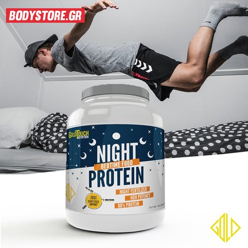 Κατά τη διάρκεια του ύπνου μένουμε για αρκετές ώρες χωρίς τροφή. Αυτό σύμφωνα με έρευνες έχει ως αποτέλεσμα τη μείωση των αμινοξέων στο αίμα, κάτι που οδηγεί σε περιορισμό της πρωτεϊνοσύνθεσης και κατ’ επέκταση σε μυϊκό καταβολισμό. Η night protein περιέχει πρωτεΐνη καζεΐνης ( 80% ), η οποία χάρη στην αργή αποδόμηση και τη σταδιακή απορρόφηση της είναι ιδανική για κατανάλωση πριν τον βραδινό σας ύπνο.