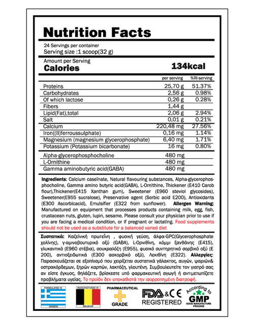 Όπως είναι λογικό χάριν στην ονομασία της, η σωστή δοσολογία είναι ένα scoop (32gr) σε νερό μία ώρα πριν από τον ύπνο. H συγκεκριμένη πρωτεΐνη είναι σε γεύση σοκολάτα και η συσκευασία της είναι 750γρ.