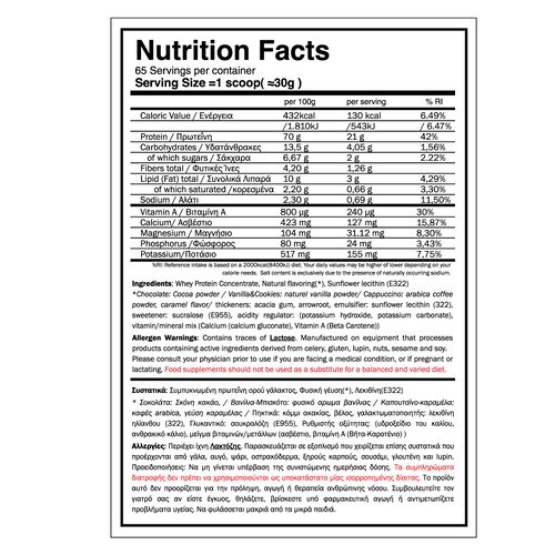 • 21 g πρωτεϊνης / 1 scoop(≈30γρ.)