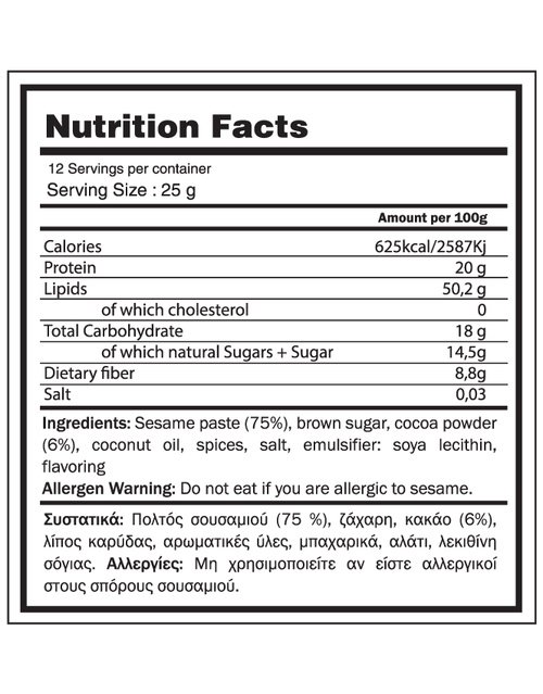 Το "taxini ta spaei" είναι απόλυτα φυσικό προϊόν διατροφής που φτιάχνεται αποκλειστικά από αναποφλοίωτους σπόρους σουσαμιού, με κακάο. Είναι μια φυτική, ολοκληρωμένη τροφή η οποία περιέχει πολύτιμα θρεπτικά συστατικά, όπως ασβέστιο, βιταμίνες, ιχνοστοιχεία, φυτοστερόλες, ενώ επίσης αποτελεί σημαντική πρωτεϊνική πηγή.