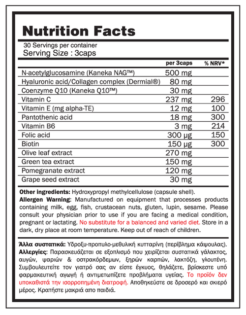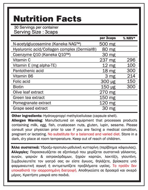 -γλυκοζαμίνη (Kaneka NAG™), εκχυλίσματα ροδιού, πράσινου τσαγιού και φύλλου ελιάς