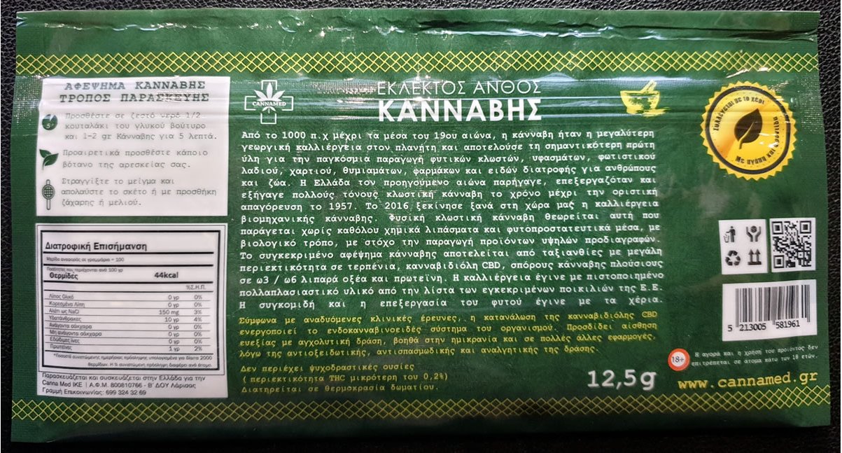 Τέλος, η Κανναβιγερόλη φαίνεται να έχει μεγαλύτερο ποσοστό απορρόφησης, ακόμη και σε άτομα που έχουν δυσανεξία ή που δεν καλύπτονται από την Κανναβιδιόλη. Οι ανθοί που συλλέχθηκαν και θρυμματίστηκαν, συσκευάστηκαν ανά 12,5 γραμμάρια σε σακουλάκι με zip-lock για την καλύτερη διατήρησή τους και την ευκολότερη χρήση τους. Στόχος η εμπειρία του καταναλωτή να είναι ανάλογη με τα ωφέλη αυτής της ποικιλίας.