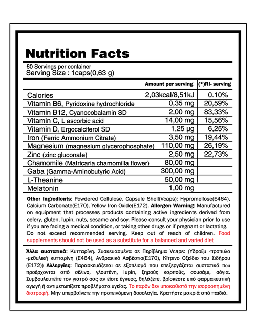 Δοσολογία: Καταναλώστε από 1 με 2 κάψουλες 20 λεπτά πριν τον ύπνο με ένα ποτήρι νερό