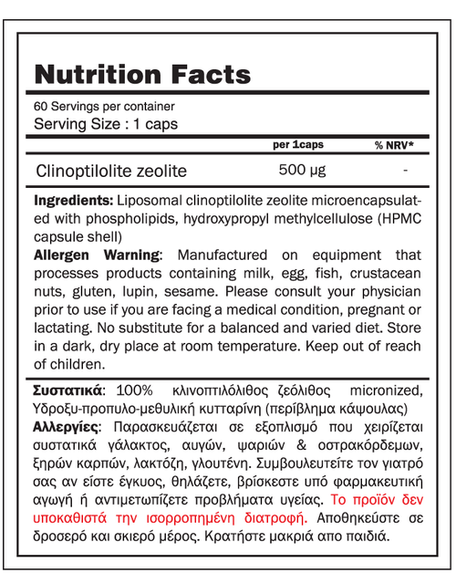 Ο ζεόλιθος είναι ένα φυσικό ορυκτό το οποίο έχει τη δυνατότητα να δεσμεύει βλαβερές ουσίες όπως τοξίνες, ελεύθερες ρίζες και βαρέα μέταλλα από τον εντερικό σωλήνα, διευκολύνοντας έτσι την φυσική αποτοξίνωση. Λόγω της χημικής του σύστασης και της δομής του ζεόλιθου(σαν σφουγγάρι), τα ιόντα των βαρέων μετάλλων και οι τοξίνες επικολλιούνται πάνω του και αποβάλλονται με φυσικό τρόπο μέσω του γαστρεντερικού συστήματος. Επίσης ο ζεόλιθος έχει την ικανότητα να προκαλεί μετατόπιση του ρΗ προς ένα πιο αλκαλικό περιβάλλον (μεταξύ 7,35 και 7,45), δημιουργώντας έτσι μια φυσική ασπίδα στον οργανισμό. Επίσης ο ζεόλιθος έχει αντιφλεγμονώδη επίδραση στο έντερο και ενισχύει φυσικά το εντερικό τοίχωμα, αποτρέποντας τη διαρροή*.